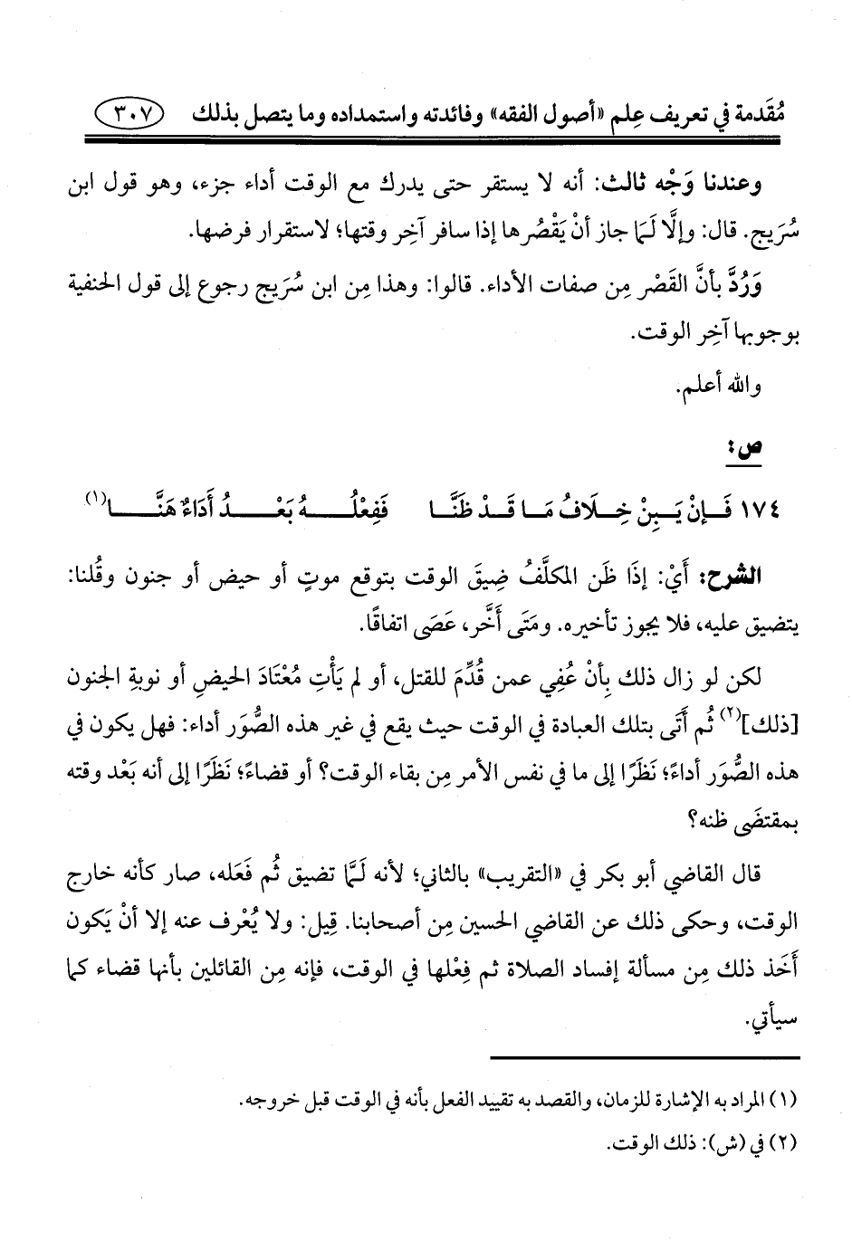 وَرُدَّ بأنَّ القَصْر مِن صفات الأداء. قالوا: وهذا مِن ابن سُرَيج رجوع إلى قول الحنفية بوجوبها آخِر الوقت.