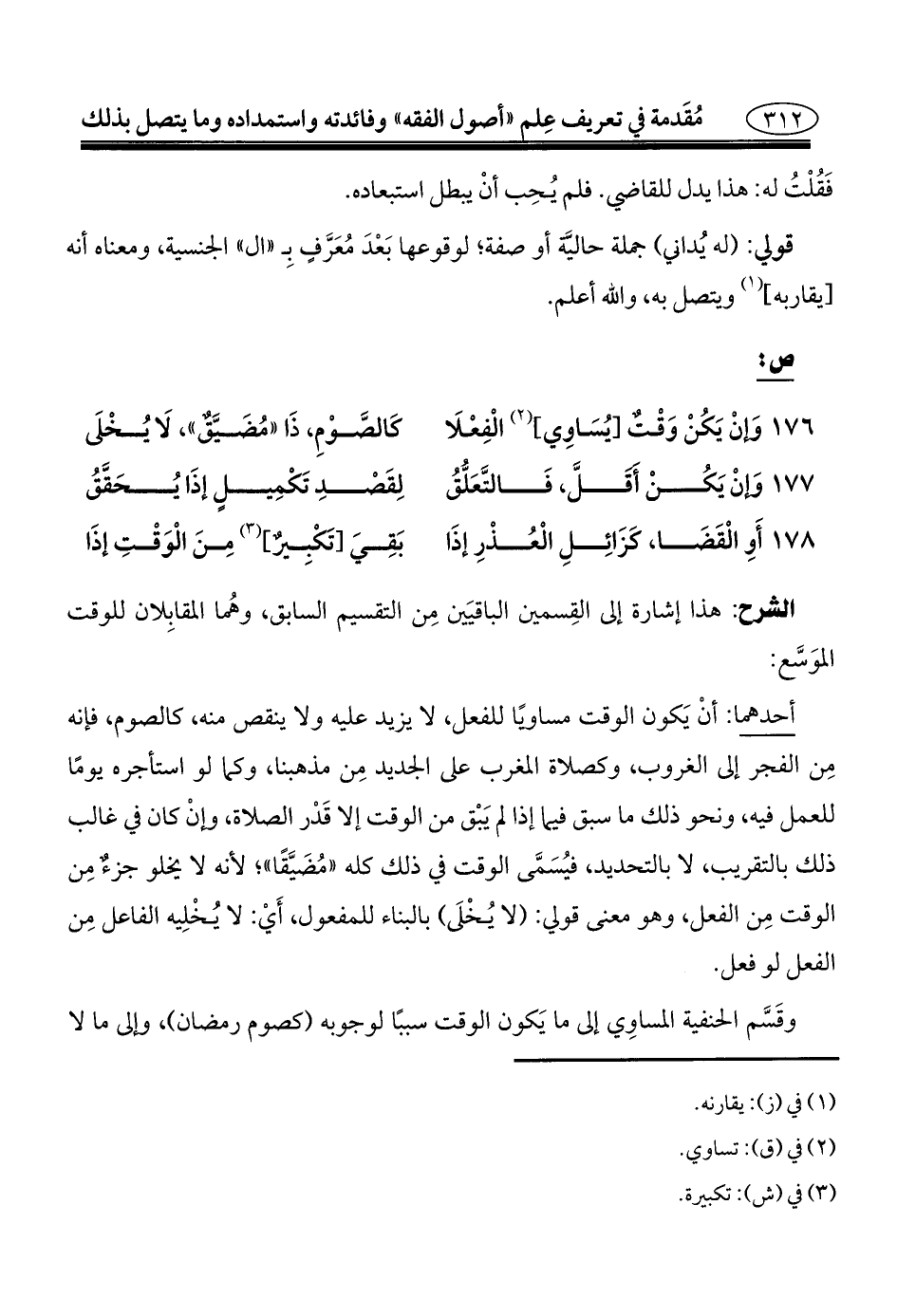 ١٧٦ - وَإنْ يَكُنْ وَقْتٌ [يُسَاوِي] (¬٢) الْفِعْلَا ... كَالصَّوْمِ، ذَا "مُضَيَّقٌ"، لَا يُخْلَى