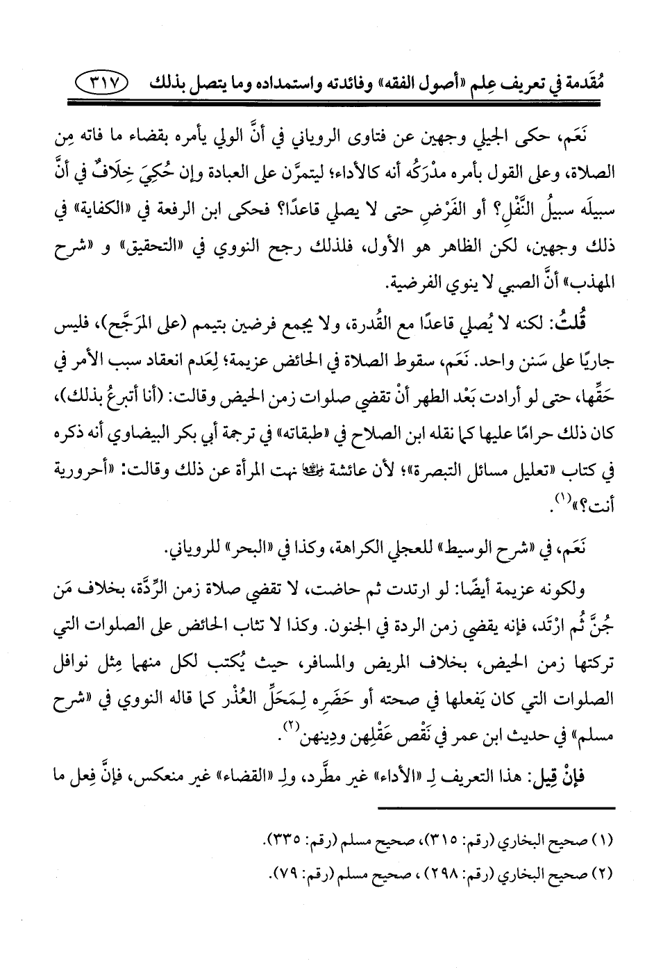 (¬١) صحيح البخاري (رقم: ٣١٥)، صحيح مسلم (رقم: ٣٣٥).