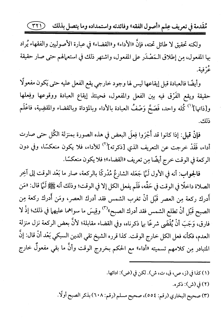 (¬١) كذا في (ز، ص، ق، ت، ش). لكن في (ض): ادائها.