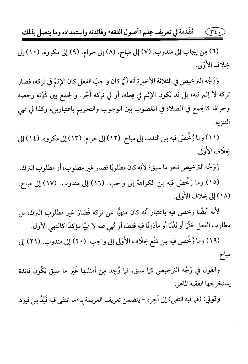 (١٩) وما رُخِّص فيه مِن مَنعْ خِلَاف الأَوْلى إلى واجب. (٢٠) إلى مندوب. (٢١) إلى مباح.