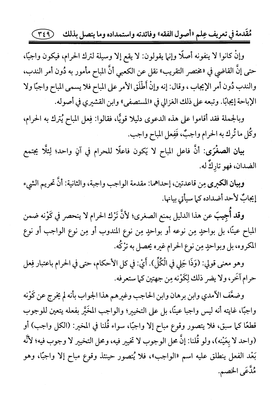 وبالجملة فقد أقاموا على هذه الدعوى دليلا قويًّا، فقالوا: فِعل المباح يُترك به الحرام، وكُل ما تُرك به الحرام واجبٌ، فَفِعل المباح واجب.