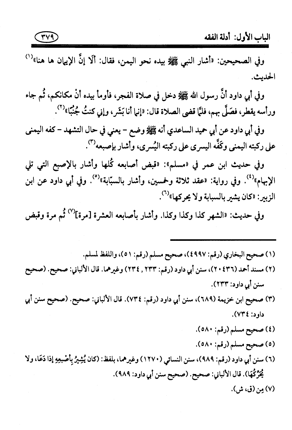 (¬٦) سنن أبي داود (رقم: ٩٨٩)، سنن النسائي (١٢٧٠) وغيرهما، بلفظ: (كان يُشِيرُ بِأصْبعِهِ إذا دَعَا, ولا يحُرِّكُهَا). قال الألباني: صحيح. (صحيح سنن أبي داود: ٩٨٩).