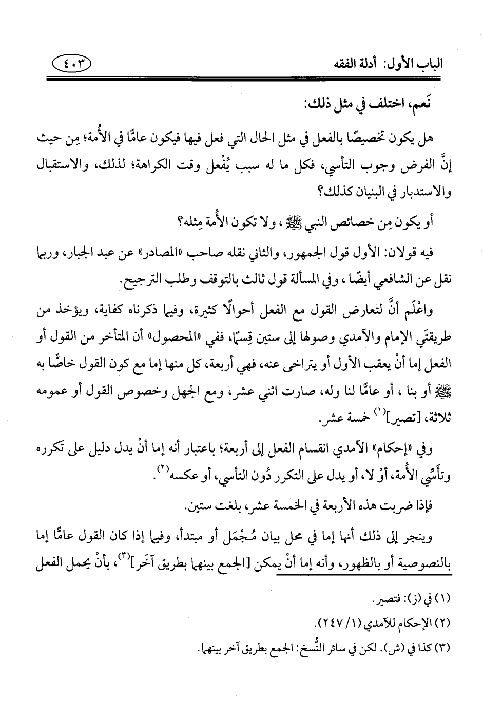 وفي "إحكام" الآمدي انقسام الفعل إلى أربعة؛ باعتبار أنه إما أنْ يدل دليل على تكرره وتأَسِّي الأُمة، أوْ لا، أو يدل على التكرر دُون التأسي، أو عكسه (¬٢).