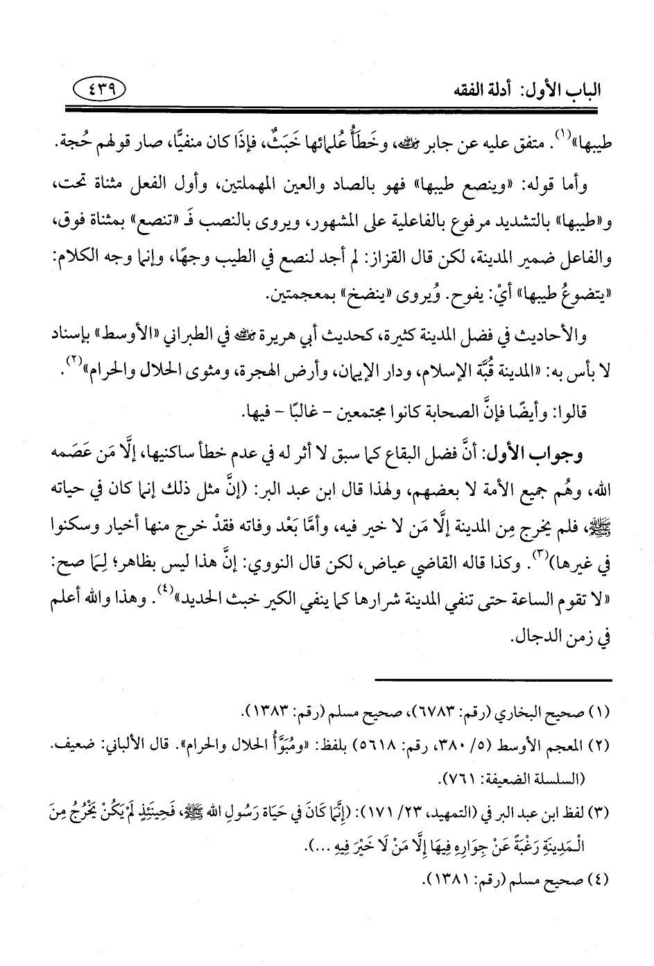 (¬٣) لفظ ابن عبد البر في (التمهيد، ٢٣/ ١٧١): (إِنَّمَا كَانَ في حَيَاة رَسُولِ الله - صلى الله عليه وسلم -، فَحِينَئِذٍ لم يَكُنْ يَخْرُجُ مِنَ الْمَدِينَةِ رَغْبَةً عَنْ جِوَاره فِيهَا إِلَّا مَنْ لَا خَيْرَ فِيهِ ... ).