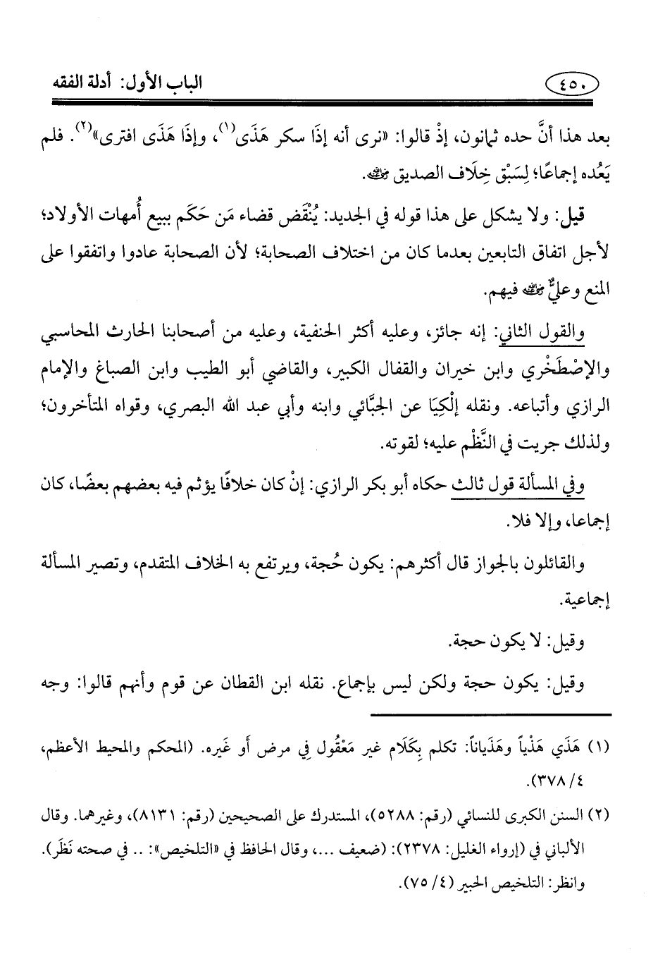 بعد هذا أنَّ حده ثمانون، إذْ قالوا: "نرى أنه إذا سكر هَذَى (¬١)، وإذَا هَذَى افترى" (¬٢). فلم يَعُده إجماعًا؛ لِسَبْق خِلَاف الصديق - رضي الله عنه -.