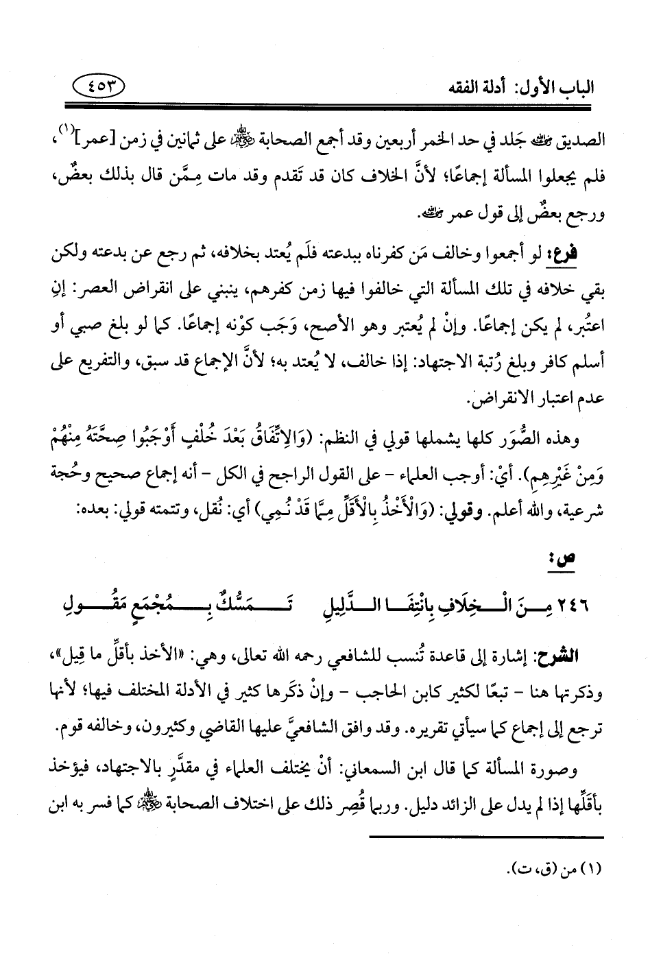٢٤٦ - مِنَ الْخِلَافِ بِانْتِفَا الدَّلِيلِ ... تَمَسُّكٌ بِمُجْمَعٍ مَقُولِ