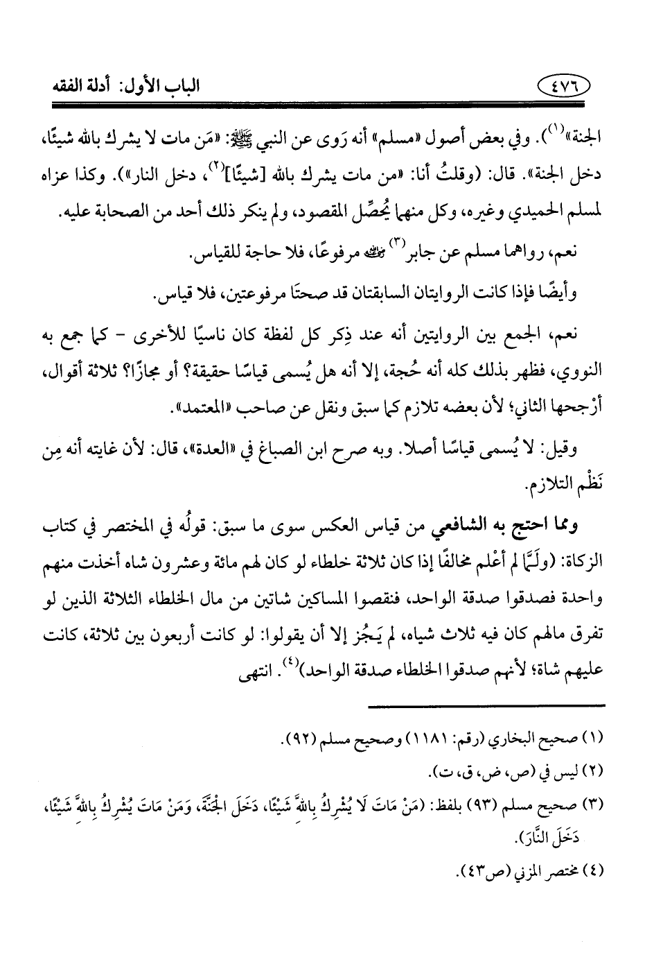 (¬٣) صحيح مسلم (٩٣) بلفظ: (مَنْ مَاتَ لَا يُشْرِكُ بِاللهَّ شَيْئًا، دَخَلَ الجْنَّةَ، وَمَنْ مَاتَ يُشْرِكُ بِاللهَّ شَيْئًا، دَخَلَ النَّارَ).
