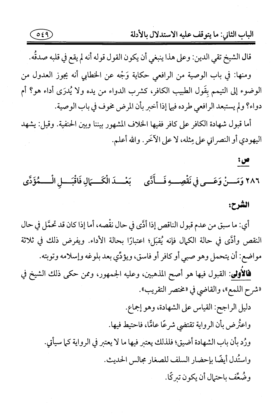 ٢٨٦ وَمَنْ وَعَى في نَقْصِهِ فَأَدَّى. . . بَعْدَ الْكَمَالِ فَاقْبَلِ الْمُؤَدَّى