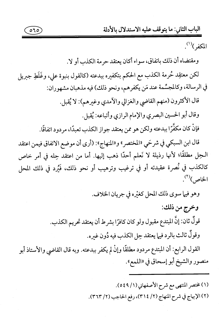 (¬٢) الإبهاج في شرح المنهاج (٢/ ٣١٤)، رفع الحاجب (٢/ ٣٦٣).