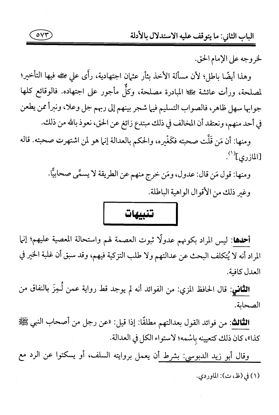 وهذا أيضًا باطل؛ لأن مسألة الأخذ بثأر عثمان اجتهادية، رأَى علي - رضي الله عنه - فيها التأخير؛ لمصلحة، ورأت عائشة - رضي الله عنه - المبادرة مصلحة، وكلٌّ مأجور على اجتهاده. فالوقائع كلها جوابها سهل ظاهر، فالصواب التسليم فيما شجر بينهم إلى ربهم جل وعلا، ونبرأ ممن يطعن في أحد منهم، ونعتقد أن المخالف في ذلك مبتدع زائغ عن الحق، نعوذ بالله من ذلك.