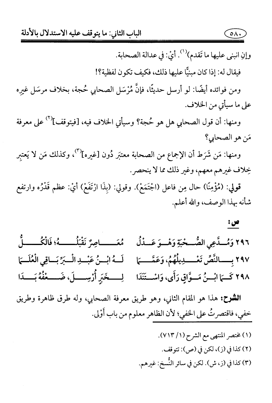 ٢٩٦ - وَمُدَّعِي الصُّحْبَةِ وَهْوَ عَدْلُ ... مُعَاصِرٌ نَقْبَلُهُ؛ فَالْكُلُّ
