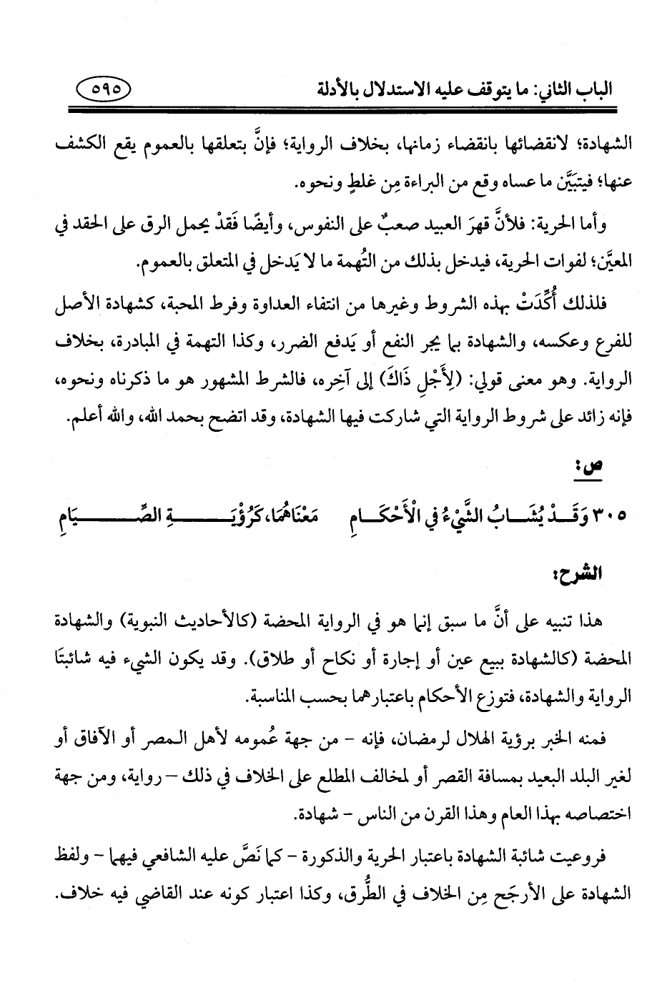 ٣٠٥ وَقَدْ يُشَابُ الشَّيْءُ في الْأَحْكَامِ. . . مَعْنَاهُمَا، كَرُؤْيَةِ الصِّيَامِ