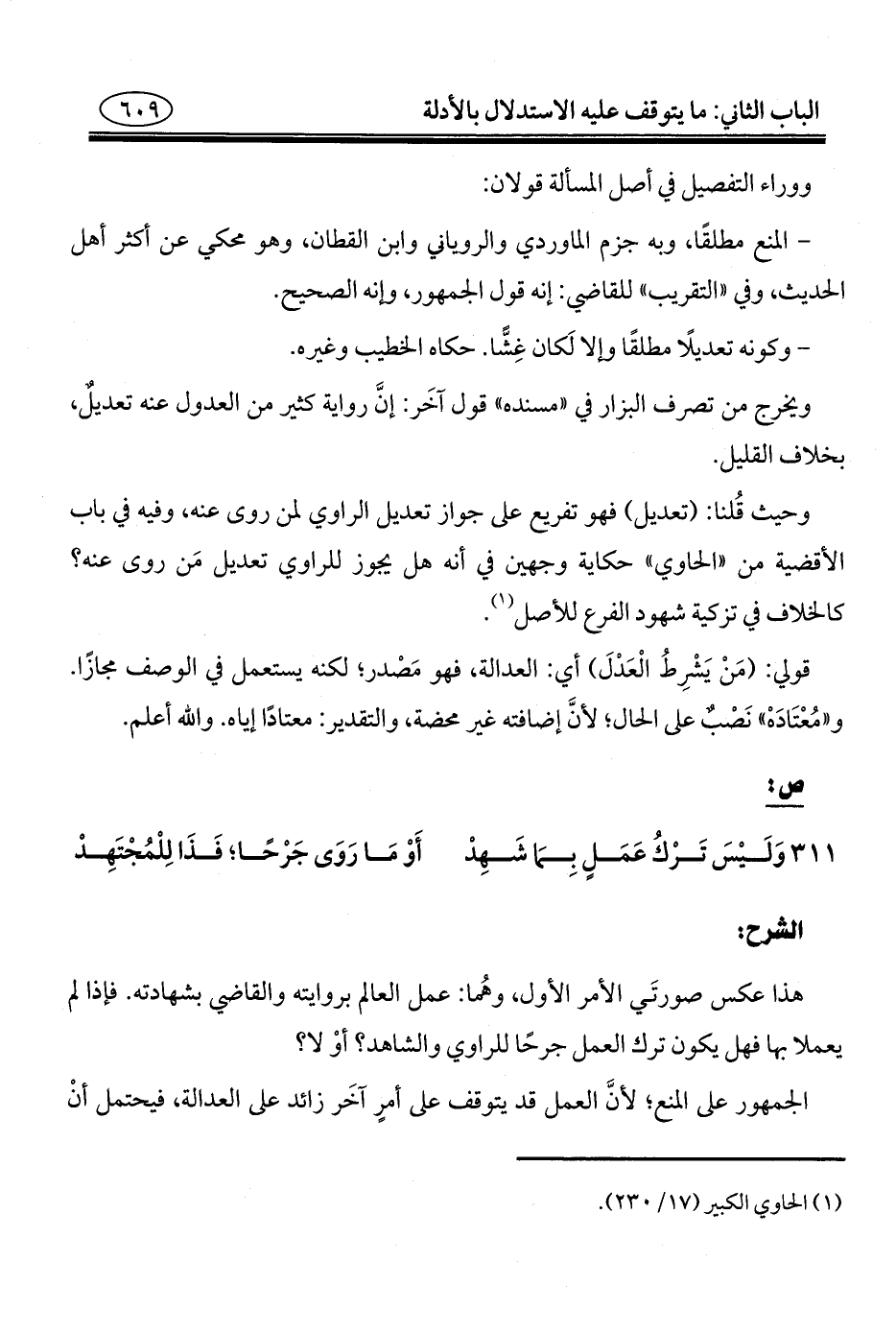 ٣١١ - وَلَيْسَ تَرْكُ عَمَلٍ بِمَا شَهِدْ ... أَوْ مَا رَوَى جَرْحًا؛ فَذَا لِلْمُجْتَهِدْ