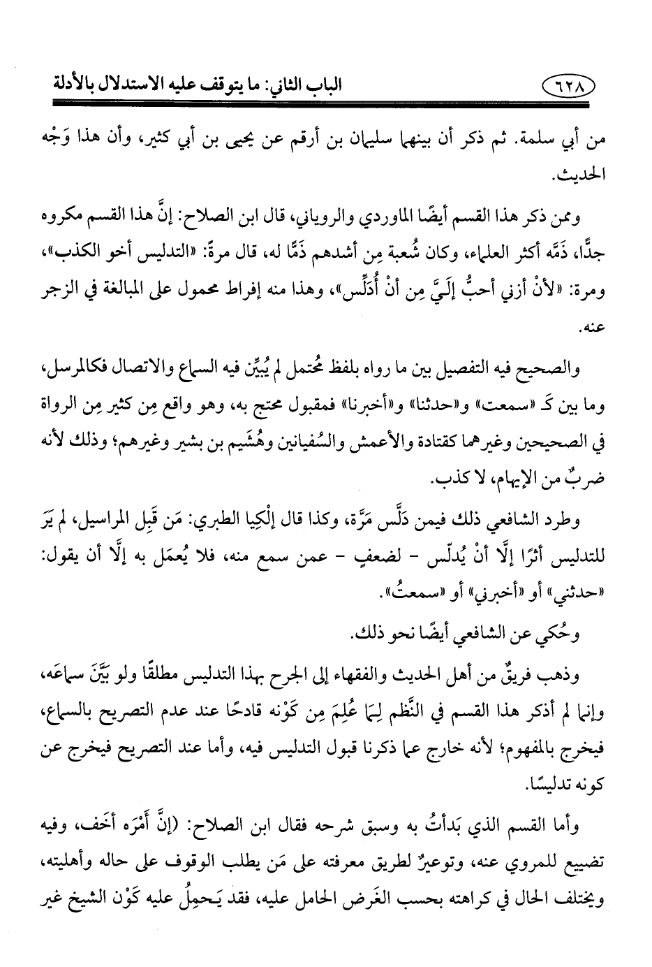 وممن ذكر هذا القسم أيضاً الماوردي والروياني، قال ابن الصلاح: إنَّ هذا القسم مكروه جدًّا، ذَمَّه أكثر العلماء، وكان شُعبة مِن أشدهم ذَمّاً له، قال مرةً: "التدليس أخو الكذب"، ومرة: "لأنْ أزني أحبُّ إلَيَّ مِن أنْ أُدَلِّس"، وهذا منه إفراط محمول على المبالغة في الزجر عنه.