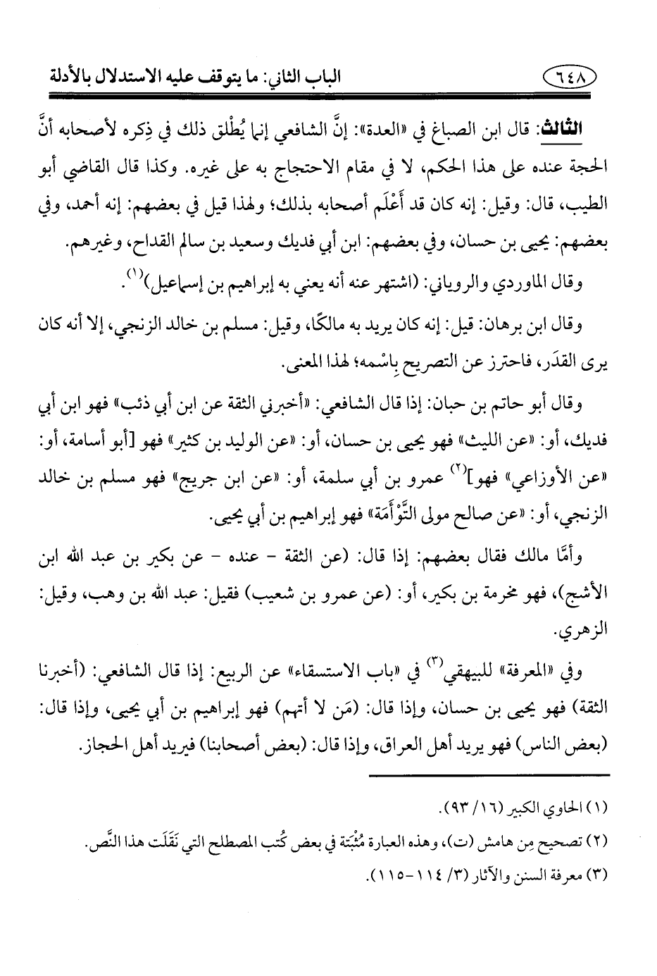 الثالث: قال ابن الصباغ في "العدة": إنَّ الشافعي إنما يُطْلق ذلك في ذِكره لأصحابه أنَّ الحجة عنده على هذا الحكم، لا في مقام الاحتجاج به على غيره. وكذا قال القاضي أبو الطيب، قال: وقيل: إنه كان قد أَعْلَم أصحابه بذلك؛ ولهذا قيل في بعضهم: إنه أحمد، وفي بعضهم: يحيى بن حسان، وفي بعضهم: ابن أبي فديك وسعيد بن سالم القداح، وغيرهم.