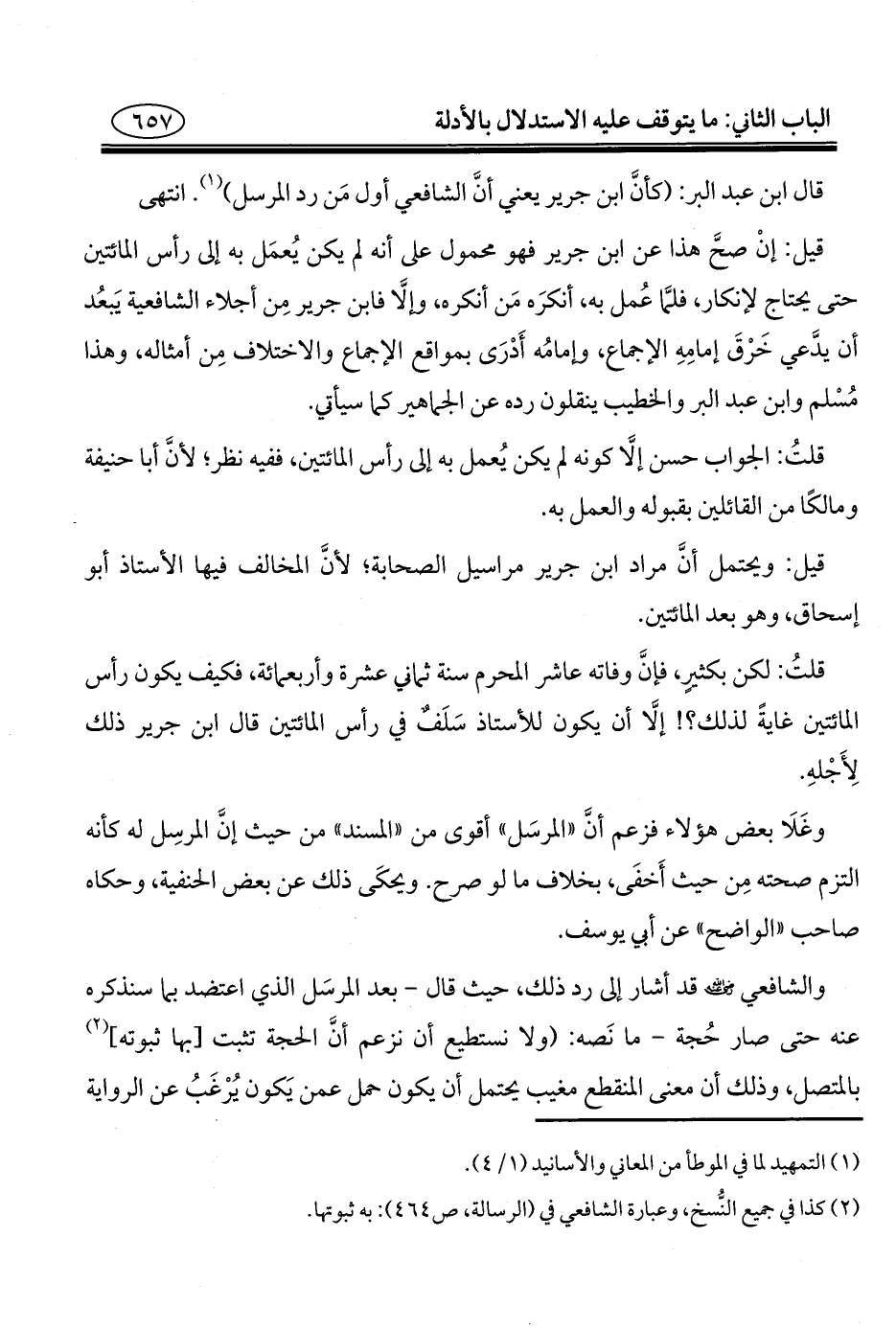 قال ابن عبد البر: (كأنَّ ابن جرير يعني أنَّ الشافعي أول مَن رد المرسل) (¬١). انتهى