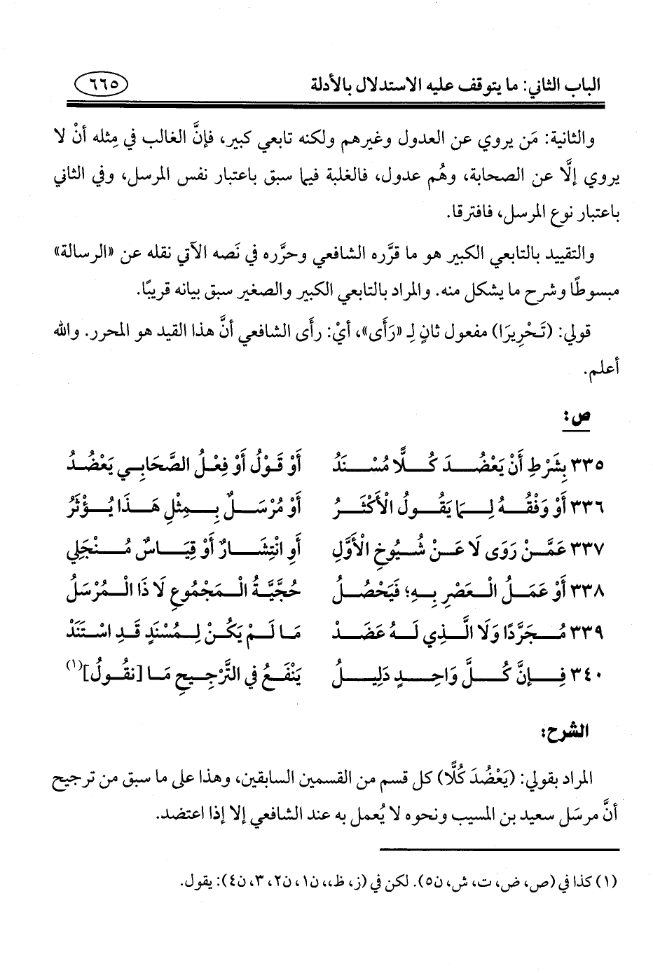 ٣٣٨ - أَوْ عَمَلُ الْعَصْرِ بِهِ؛ فَيَحْصُلُ ... حُجَّيَّةُ الْمَجْمُوعِ لَا ذَا الْمُرْسَلُ