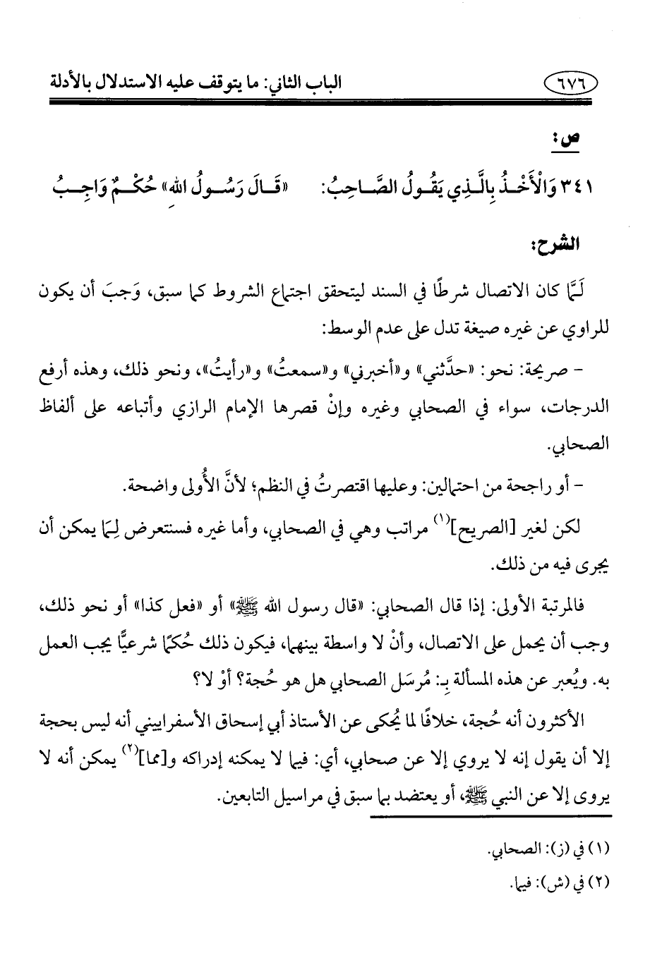 ٣٤١ - وَالْأَخْذُ بِالَّذِي يَقُولُ الصَّاحِبُ: ... "قَالَ رَسُولُ اللهِ" حُكْم وَاجِبُ