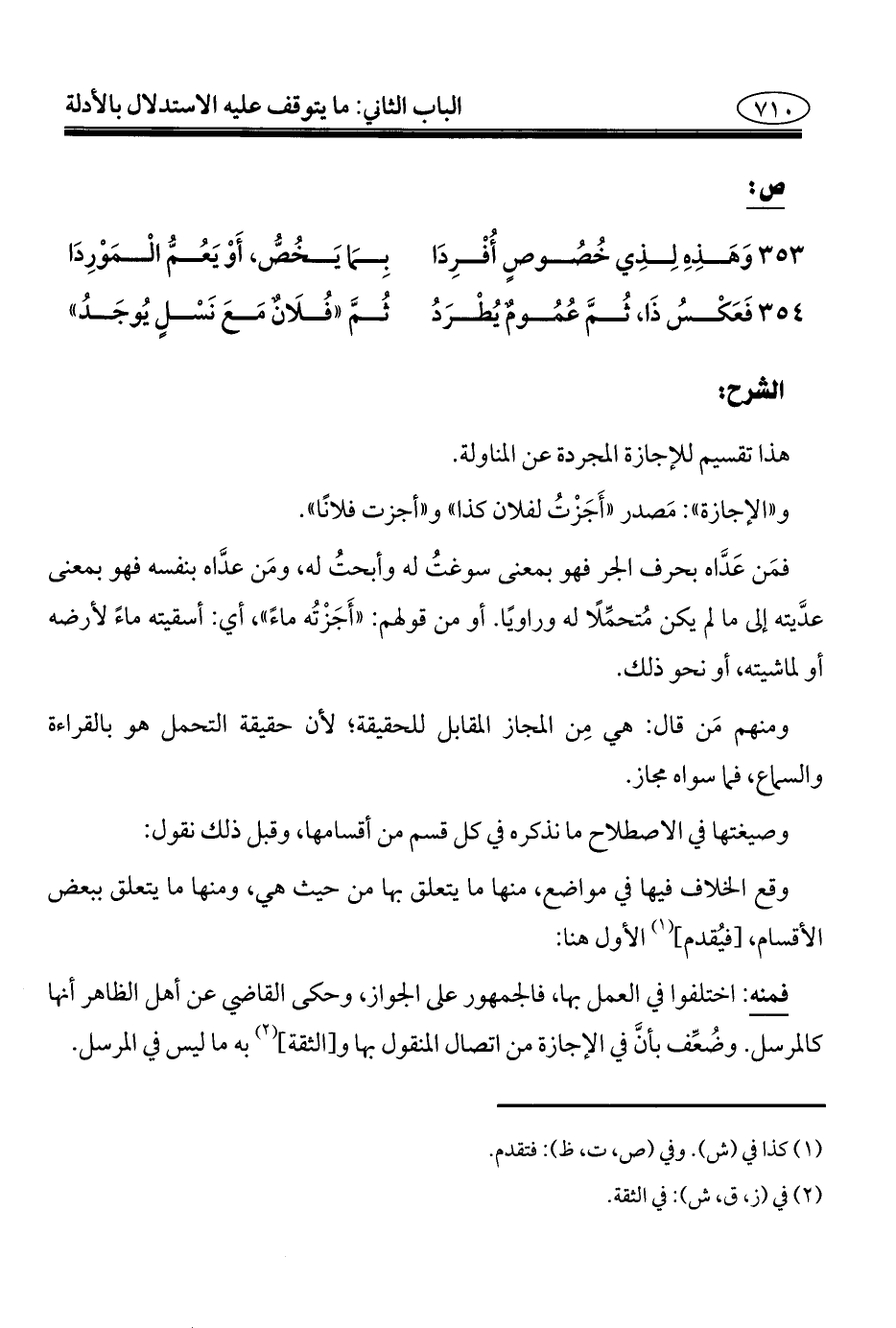 فمَن عَدَّاه بحرف الجر فهو بمعنى سوغتُ له وأبحتُ له، ومَن عدَّاه بنفسه فهو بمعنى عدَّيته إلى ما لم يكن مُتحمِّلًا له وراويًا. أو من قولهم: "أَجَزْتُه ماءً"، أي: أسقيته ماءً لأرضه أو لماشيته، أو نحو ذلك.