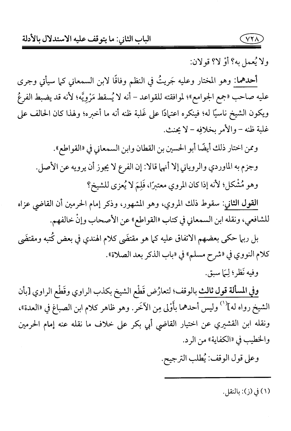 القول الثاني: سقوط ذلك المروي، وهو المشهور، وذكر إمام الحرمين أن القاضي عزاه للشافعي، ونقله ابن السمعاني في كتاب "القواطع" عن الأصحاب وإنْ خالفهم.