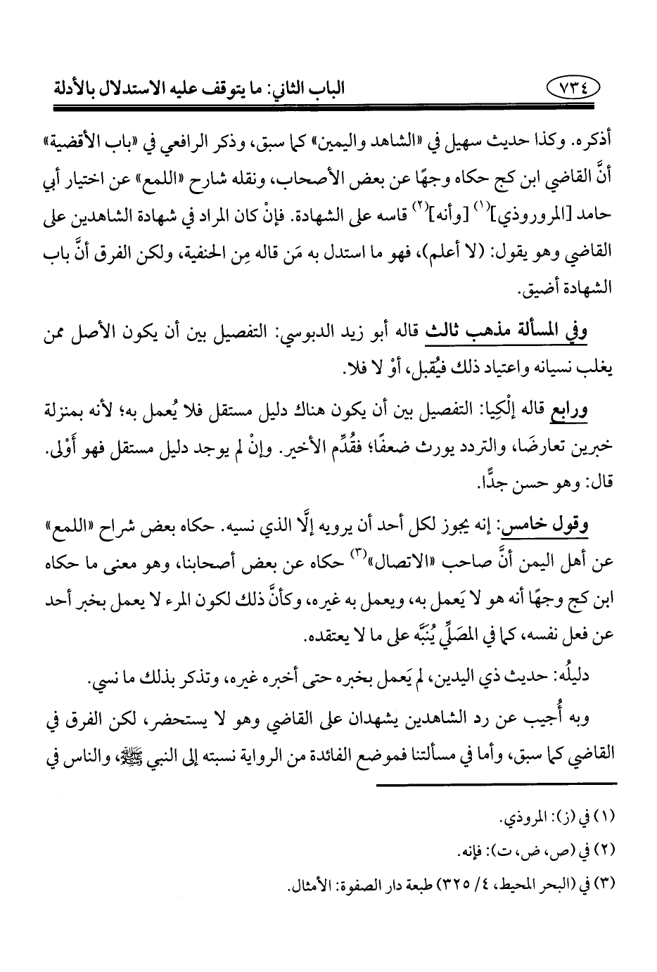 أذكره. وكذا حديث سهيل في "الشاهد واليمين" كما سبق، وذكر الرافعي في "باب الأقضية" أنَّ القاضي ابن كج حكاه وجهًا عن بعض الأصحاب، ونقله شارح "اللمع" عن اختيار أبي حامد [المروروذي] (¬١) [وأنه] (¬٢) قاسه على الشهادة. فإنْ كان المراد في شهادة الشاهدين على القاضي وهو يقول: (لا أعلم)، فهو ما استدل به مَن قاله مِن الحنفية، ولكن الفرق أنَّ باب الشهادة أضيق.
