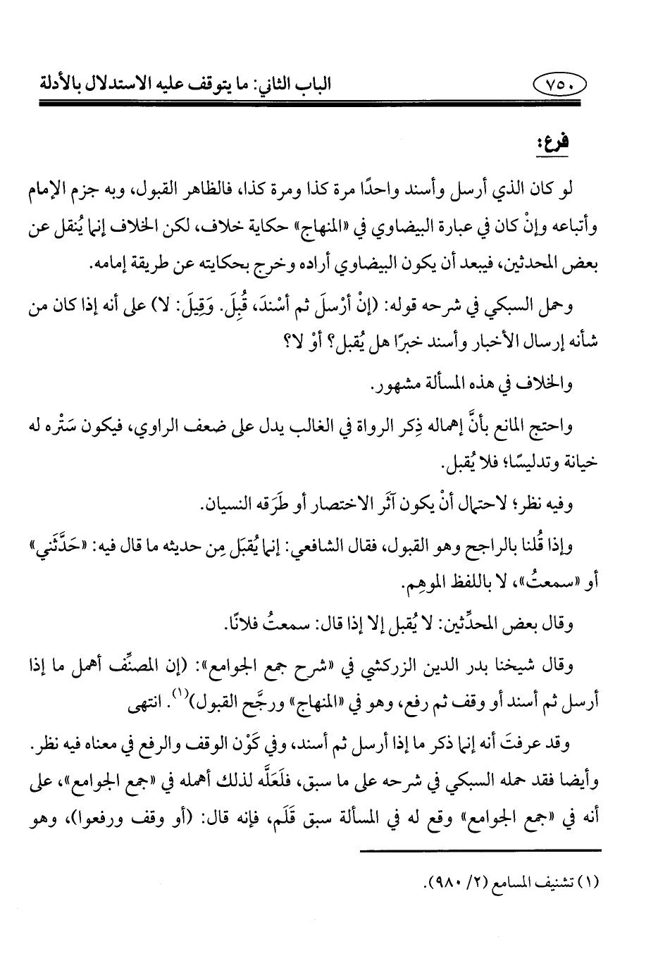 وقال شيخنا بدر الدين الزركشي في "شرح جمع الجوامع": (إن المصنِّف أهمل ما إذا أرسل ثم أسند أو وقف ثم رفع، وهو في "المنهاج" ورجَّح القبول) (¬١). انتهى