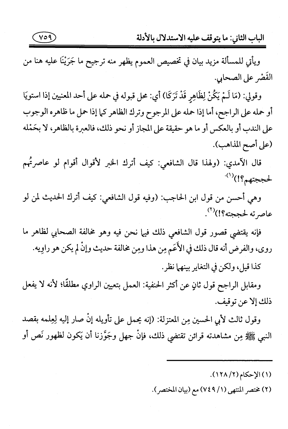 (¬٢) مختصر المنتهى (١/ ٧٤٩) مع (بيان المختصر).