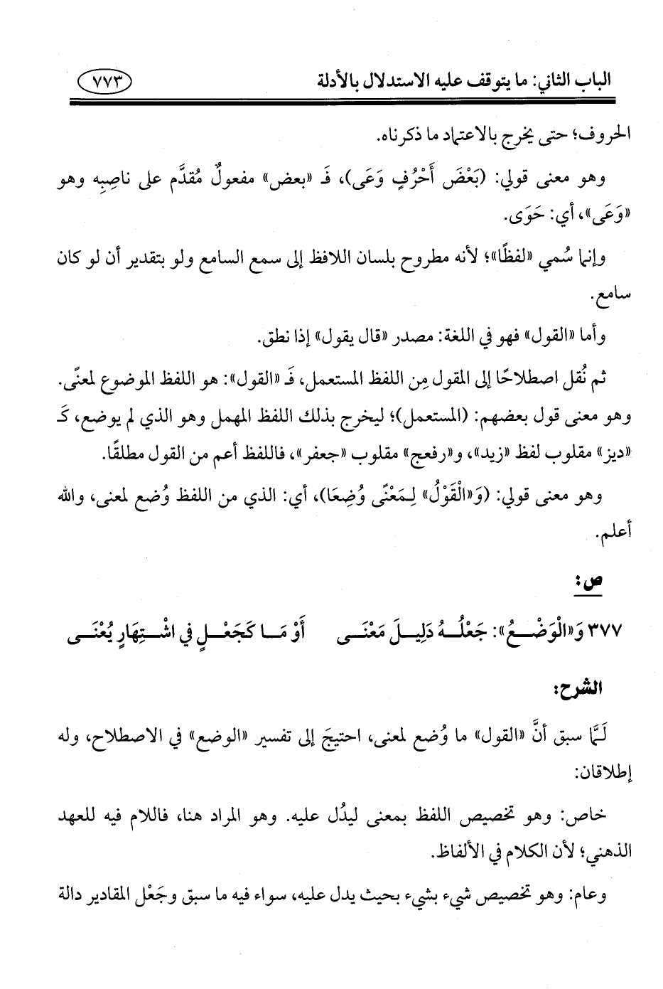 ٣٧٧ - وَ"الْوَضْعُ": جَعْلُهُ دَلِيلَ مَعْنَى ... أَوْمَا كَجَعْلٍ في اشْتِهَارٍ يُعْنَى
