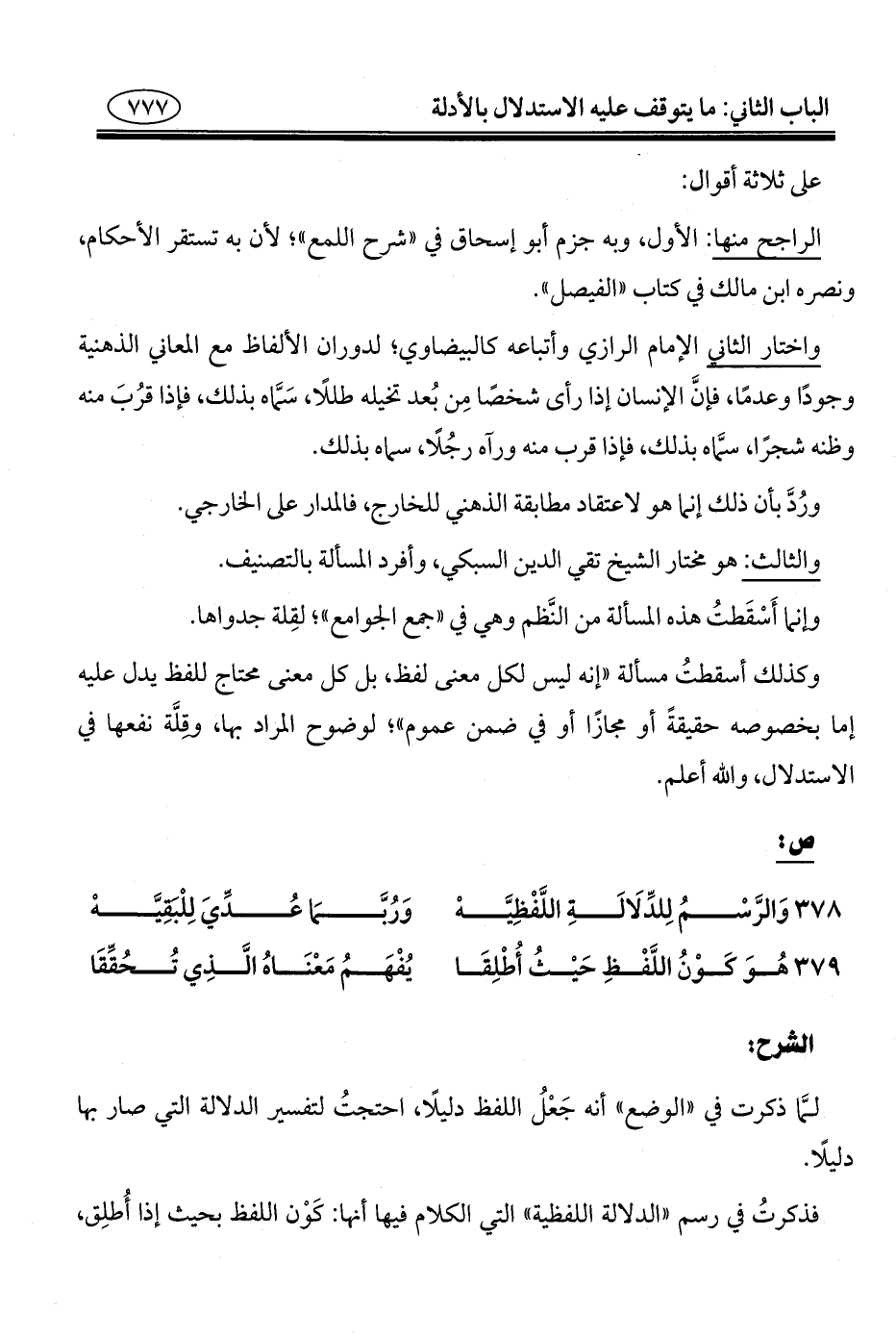 وكذلك أسقطتُ مسألة "إنه ليس لكل معنى لفظ، بل كل معنى محتاج للفظ يدل عليه إما بخصوصه حقيقةً أو مجازًا أو في ضمن عموم"؛ لوضوح المراد بها، وقِلَّة نفعها في الاستدلال، والله أعلم.