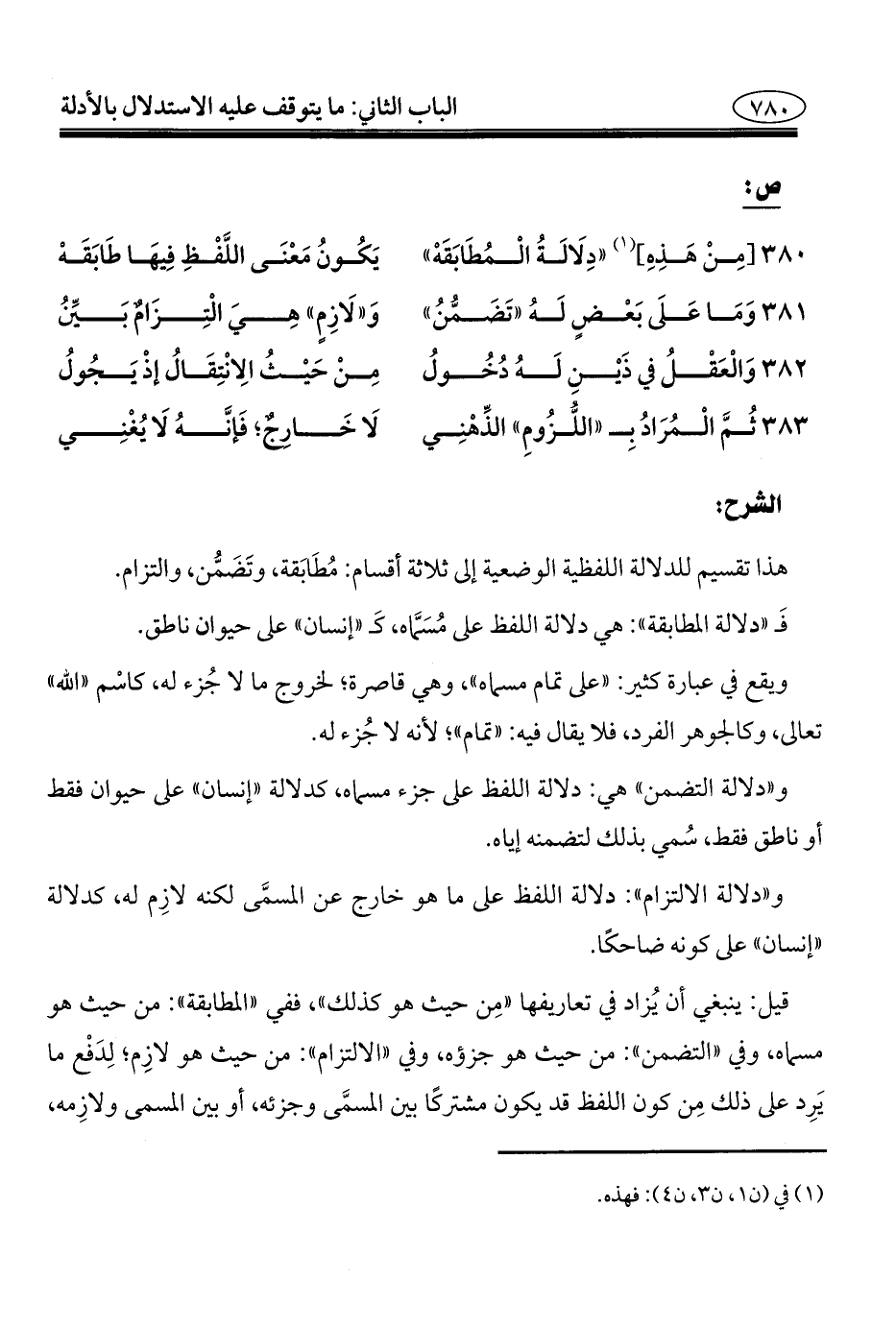 ٣٨٠ - [مِنْ هَذهِ] (¬١) "دِلَالَةُ الْمُطَابَقَهْ" ... يَكُونُ مَعْنَى اللَّفْظِ فِيهَا طَابَقَهْ