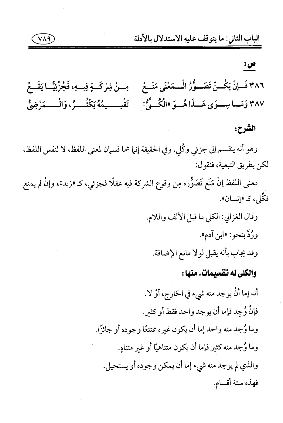٣٨٧ - وَمَا سِوَى هَذَا هُوَ "الْكُلِّىُّ" ... تَقْسِيمُهُ يَكْثُرُ، وَالْمَرْضِىُّ