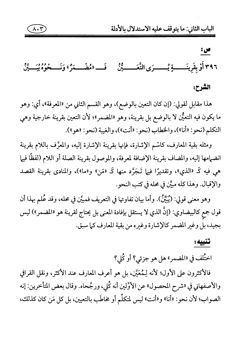 ص: ٣٩٦ - أَوْ بِقَرِينَةٍ يُرَى التَّعَيُّن ... فَ "مُضْمَرٌ" وَنَحْوُهُ يُبَيَّنُ