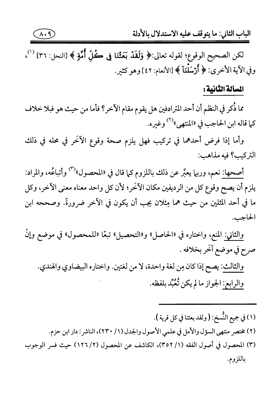 (¬٢) مختصر منتهى السؤل والأمل في علمي الأصول والجدل (١/ ٢٣٠)، الناشر: دار ابن حزم.