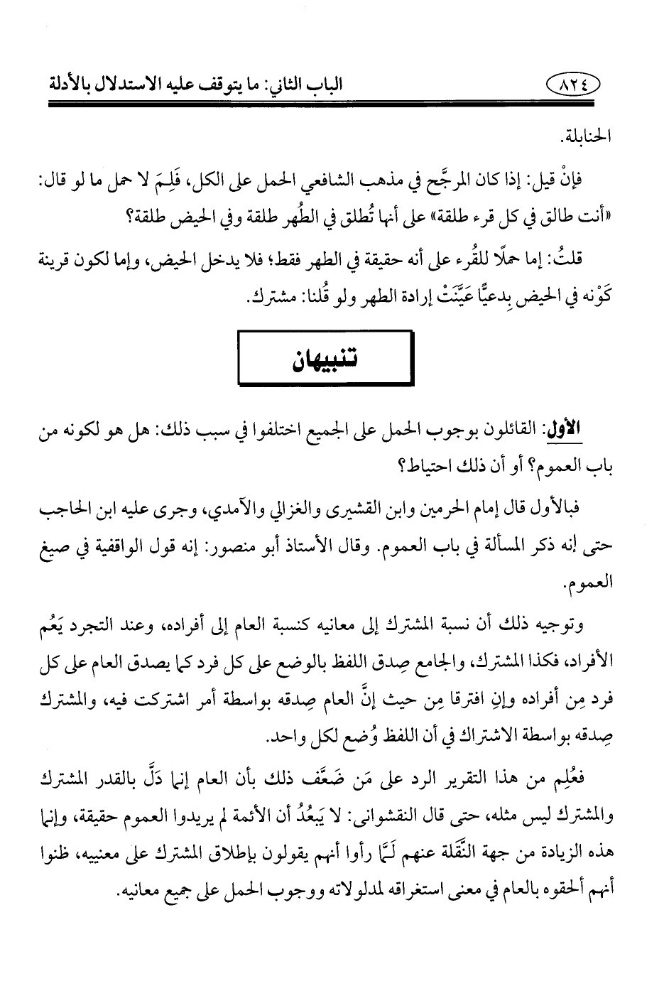 فعُلِم من هذا التقرير الرد على مَن ضَعَّف ذلك بأن العام إنما دَلَّ بالقدر المشترك والمشترك ليس مثله، حتَّى قال النقشوانى: لا يَبعُدُ أن الأئمة لم يريدوا العموم حقيقة، وإنَّما هذه الزِّيادة من جهة النَّقَلة عنهم لَمَّا رأوا أنهم يقولون بإطلاق المشترك على معنييه، ظنوا أنهم ألحقوه بالعام في معنى استغراقه لمدلولاته ووجوب الحمل على جميع معانيه.