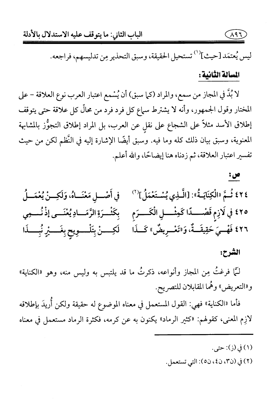 ٤٢٤ - ثُمَّ "الْكِنَايَةُ": [الَّذِي يُسْتَعْمَلُ] (¬٢) ... في أَصْلِ مَعْنَاهُ، وَلَكِنْ يُعْمَلُ