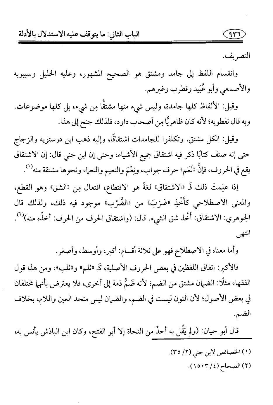 وانقسام اللفظ إلى جامد ومشتق هو الصحيح المشهور، وعليه الخليل وسيبويه والأصمعي وأبو عُبَيد وقطرب وغيرهم.