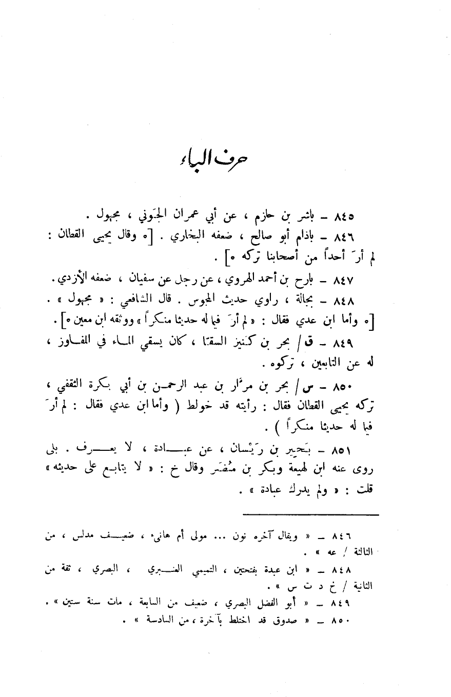 848 - بجالة رَاوِي حَدِيث الْمَجُوس قَالَ الشَّافِعِي مَجْهُول واما ابْن عدي فَقَالَ لم ار فِيمَا لَهُ حَدِيثا مُنْكرا وَوَثَّقَهُ ابْن معِين