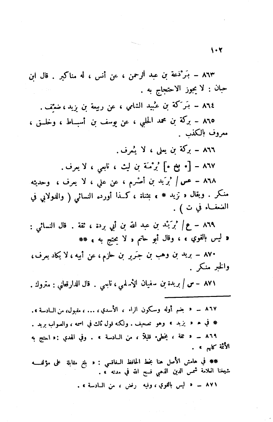 863 - برذعة بن عبد الرَّحْمَن عَن انس لَهُ مَنَاكِير قَالَ ابْن حبَان لايجوز الِاحْتِجَاج بِهِ