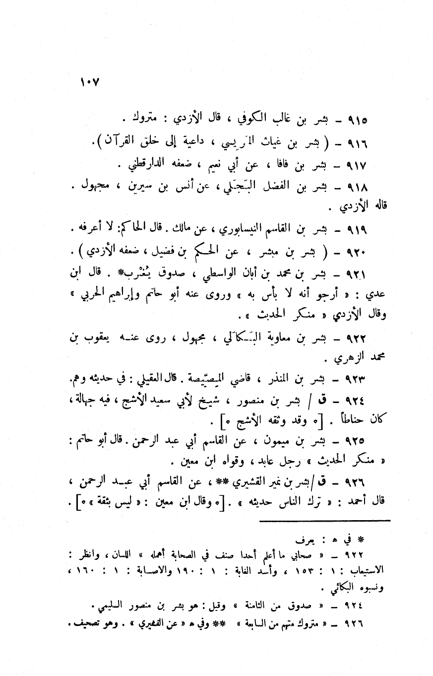 925 - بشر بن مَيْمُون عَن الْقَاسِم ابي عبد الرَّحْمَن قَالَ ابو حَاتِم مُنكر الحَدِيث رجل عَابِد وَقواهُ ابْن معِين