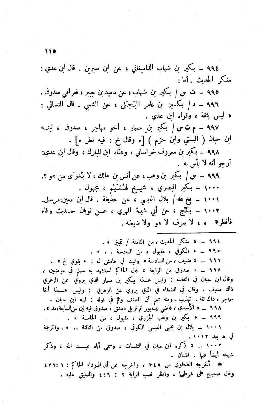 994 - بكير بن شهَاب الدَّامغَانِي عَن ابْن سِيرِين قَالَ ابْن عدي مُنكر الحَدِيث اما