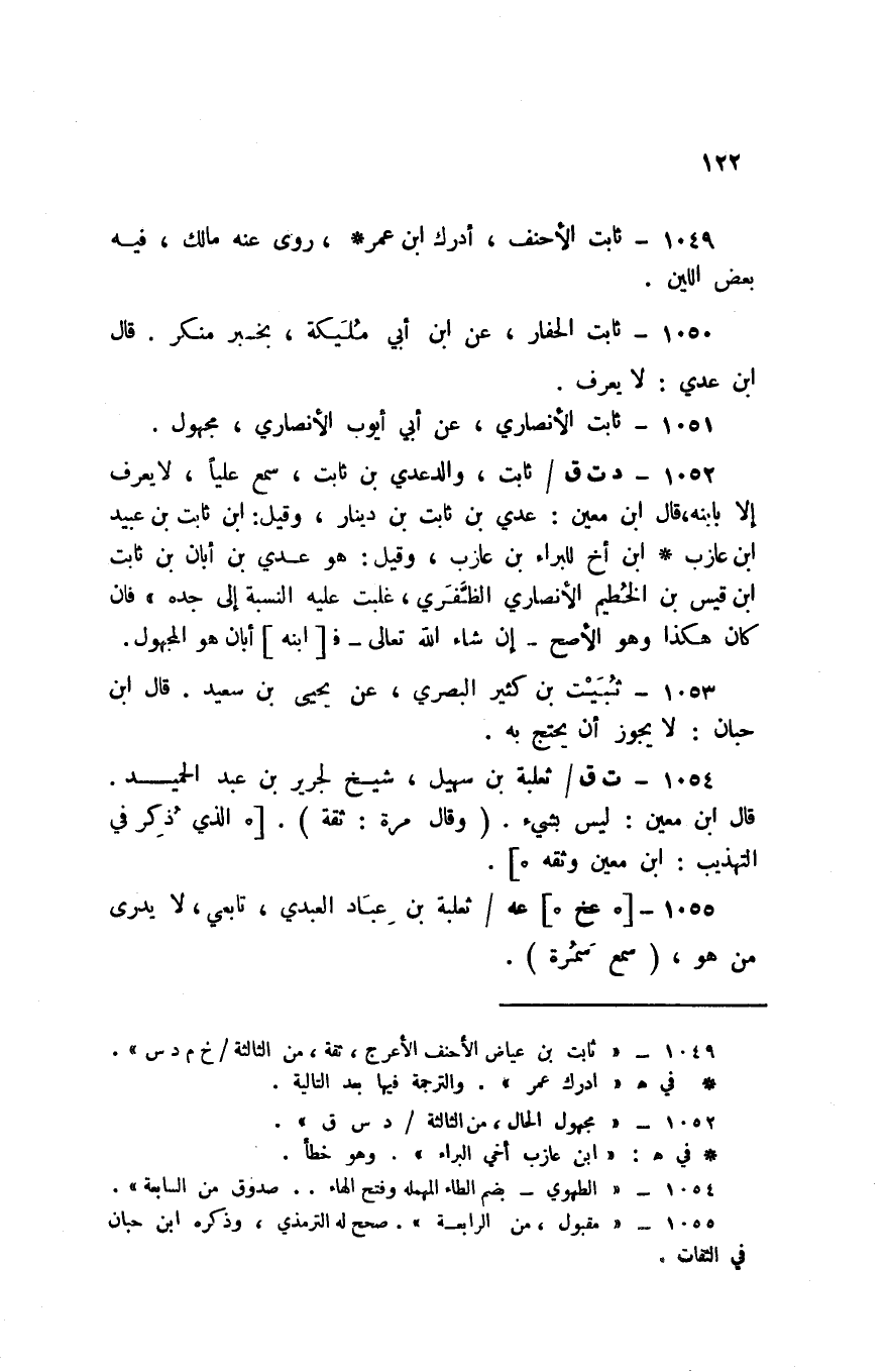 1049 - ثَابت الاحنف اِدَّرَكَ إِبْنِ عمر روى عَنهُ مَالك فِيهِ بعض اللين