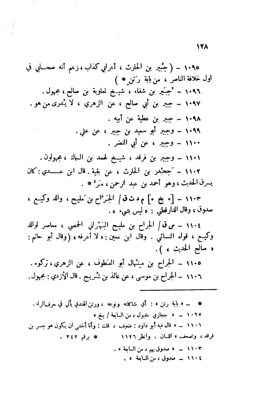 1095 - جُبَير بن الْحَارِث أَعْرَابِي كَذَّاب زعم أَنه صَحَابِيّ فِي أول خلَافَة النَّاصِر من بابة رتن