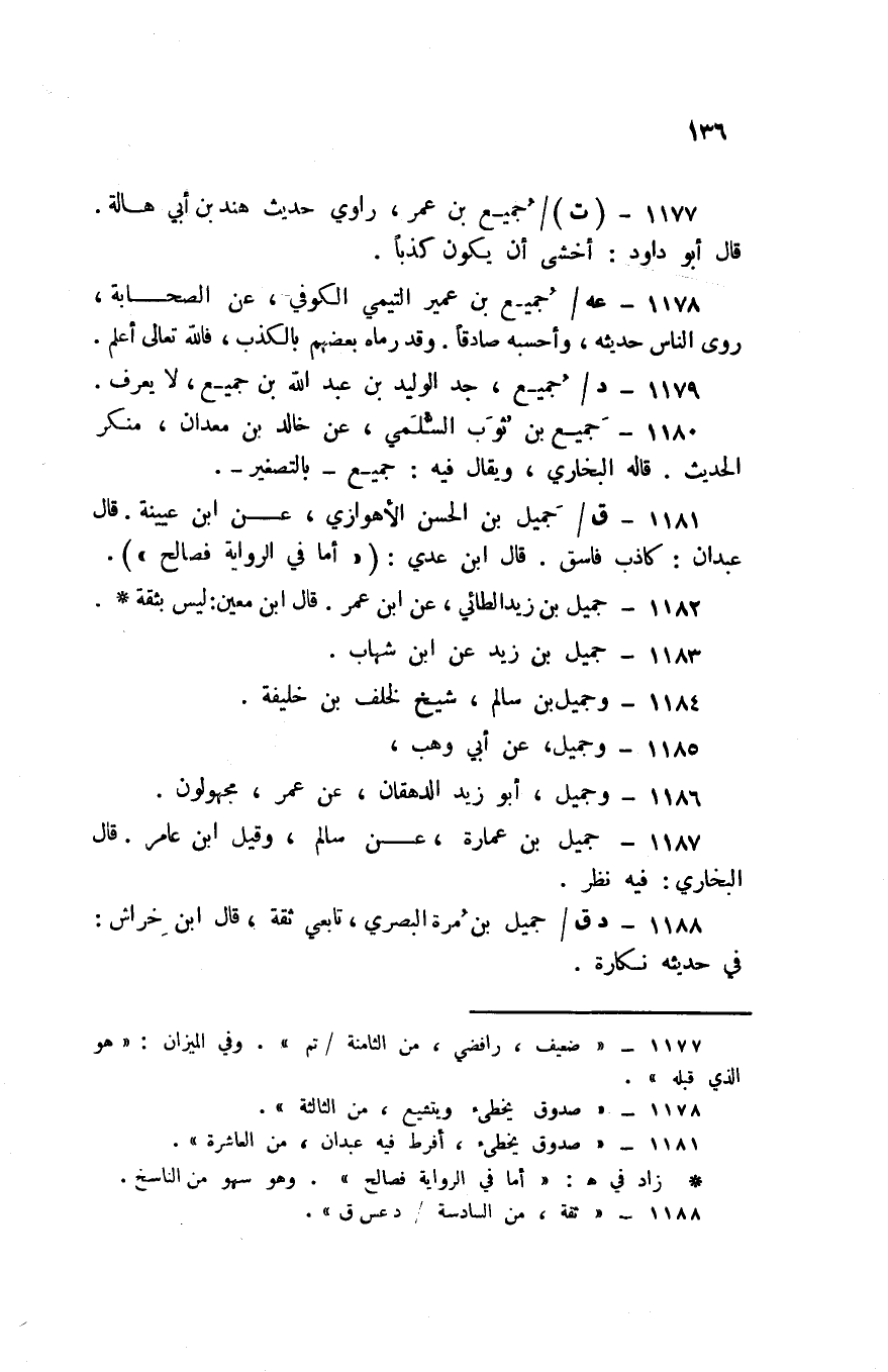 1187 - جميل بن عمَارَة عَن سَالم وَقيل ابْن عَامر قَالَ البُخَارِيّ فِيهِ نظر
