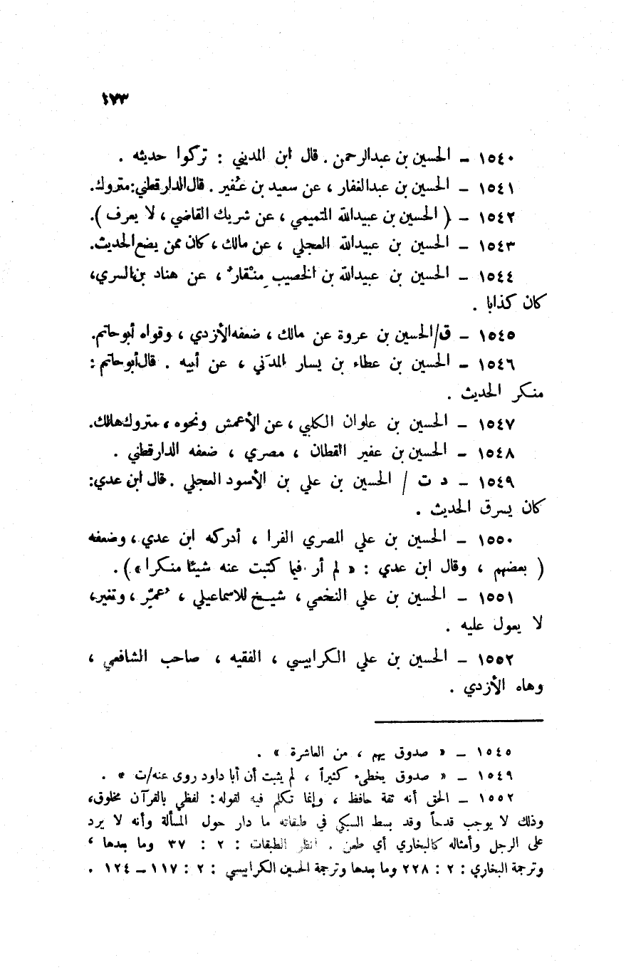 1552 - الْحُسَيْن بن عَليّ الْكَرَابِيسِي الْفَقِيه صَاحب الشَّافِعِي وهاه الْأَزْدِيّ 174