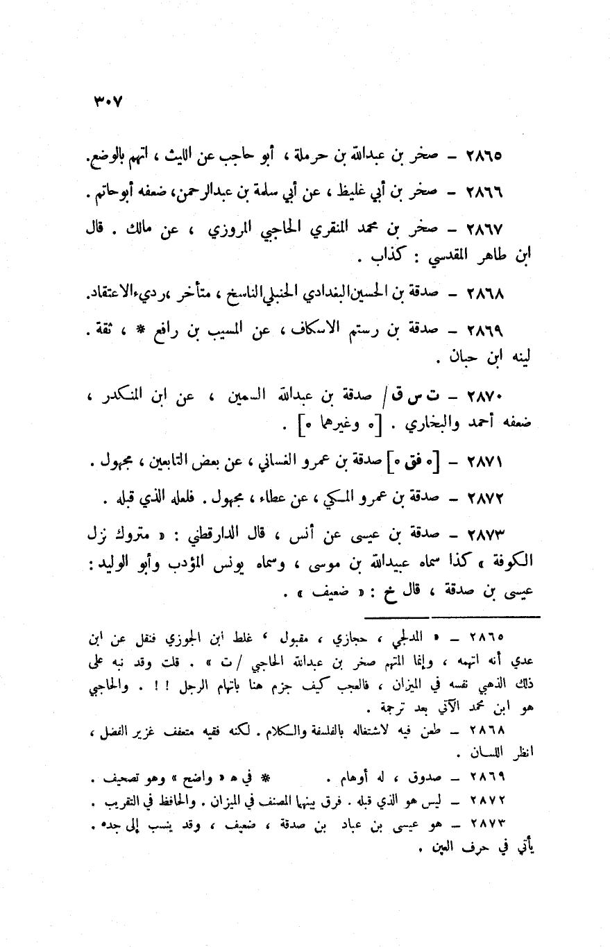 2869 - صَدَقَة بن رستم الاسكاف عَن الْمسيب بن رَافع ثِقَة لينه ابْن حبَان