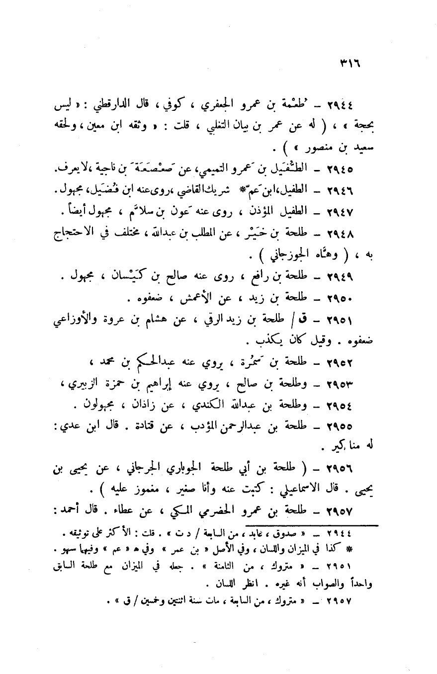 2956 - طَلْحَة بن ابي طَلْحَة الجوباري الْجِرْجَانِيّ عَن يحيى بن يحيى قَالَ الاسماعيلي كتبت عَنهُ وانا صَغِير مغموز عَلَيْهِ