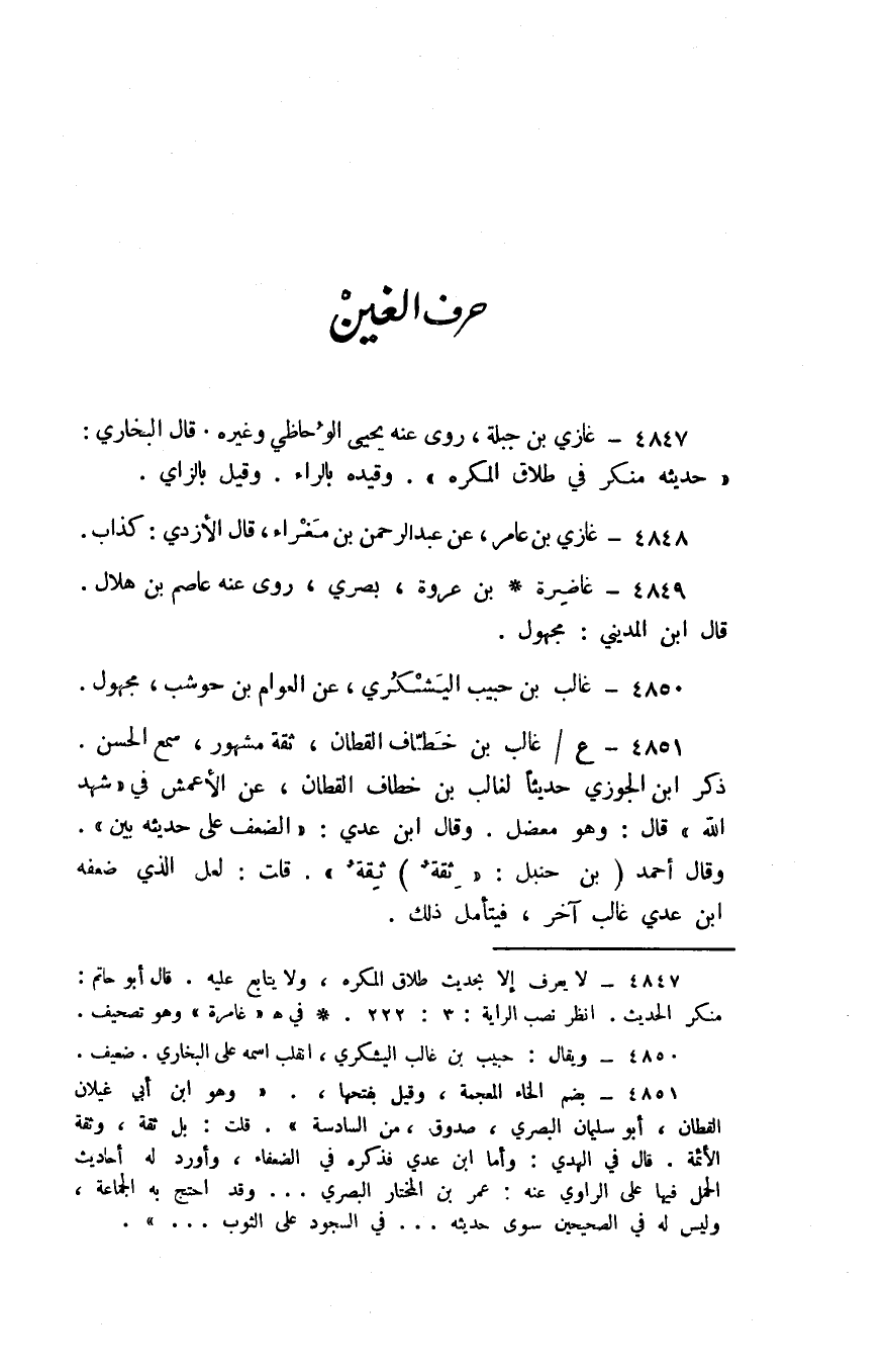 4849 - غاضرة بن عُرْوَة بَصرِي روى عَنهُ عَاصِم بن هِلَال قَالَ ابْن الْمَدِينِيّ مَجْهُول