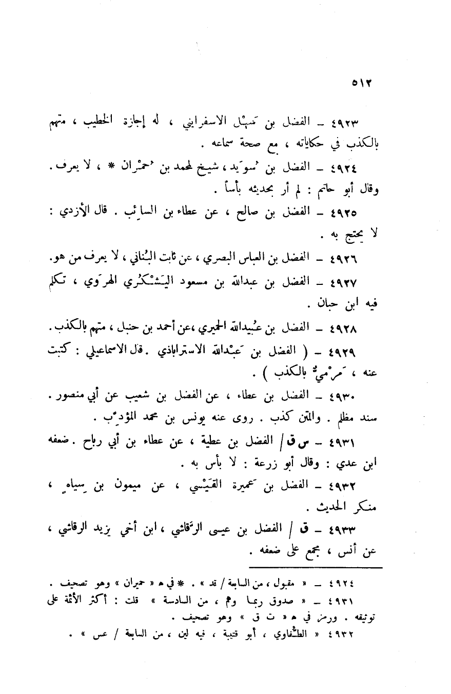 4933 - ق / الْفضل بن عِيسَى الرقاشِي ابْن أخي يزِيد الرقاشِي عَن أنس مجمع على ضعفه