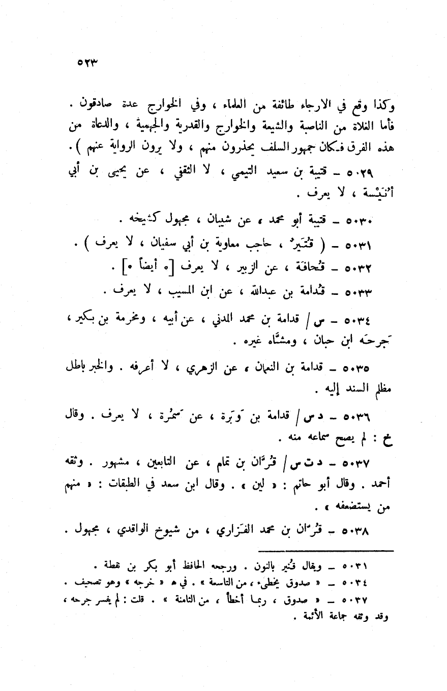 وَكَذَا وَقع فِي الأرجاء طَائِفَة من الْعلمَاء وَفِي الْخَوَارِج عدَّة صَادِقُونَ فَأَما الغلاة من الناصبة والشيعة والخوراج والقدرية والجهمية والدعاة من هَذِه الْفرق فَكَانَ جُمْهُور السّلف يحذرون مِنْهُم وَلَا يرَوْنَ الرِّوَايَة عَنْهُم